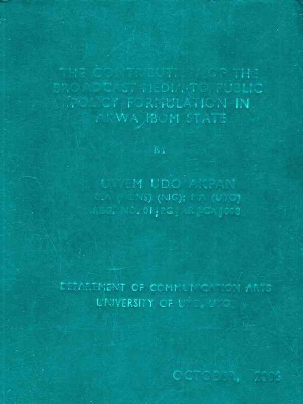 Department of Communication Arts,, University of Uyo, , Uyo, Nigeria